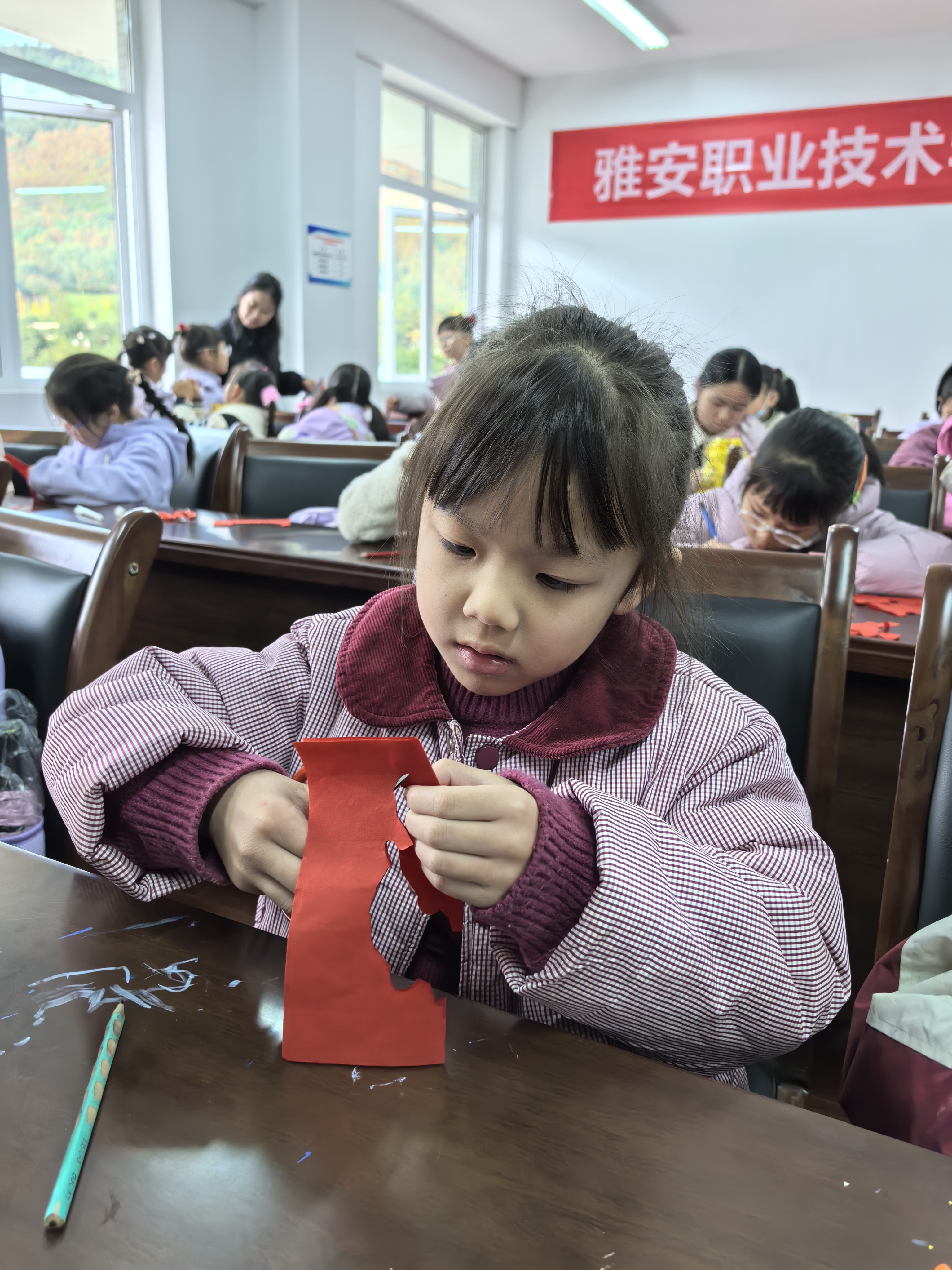 艺术浸润板块着力激发创意与审美潜能。创意画课程不设主题限制,鼓励学生以秋日景物与研学见闻为灵感自由创作,教师从色彩搭配、画面构图等角度给予专业指导,助力想象落地为生动作品;剪纸课堂则化繁为简,以枫叶、小动物等易上手图案为载体,让学生在折叠与裁剪中体验非遗之美,同步锻炼手部精细动作能力与专注耐心,实现审美素养与创造力的同步提升。