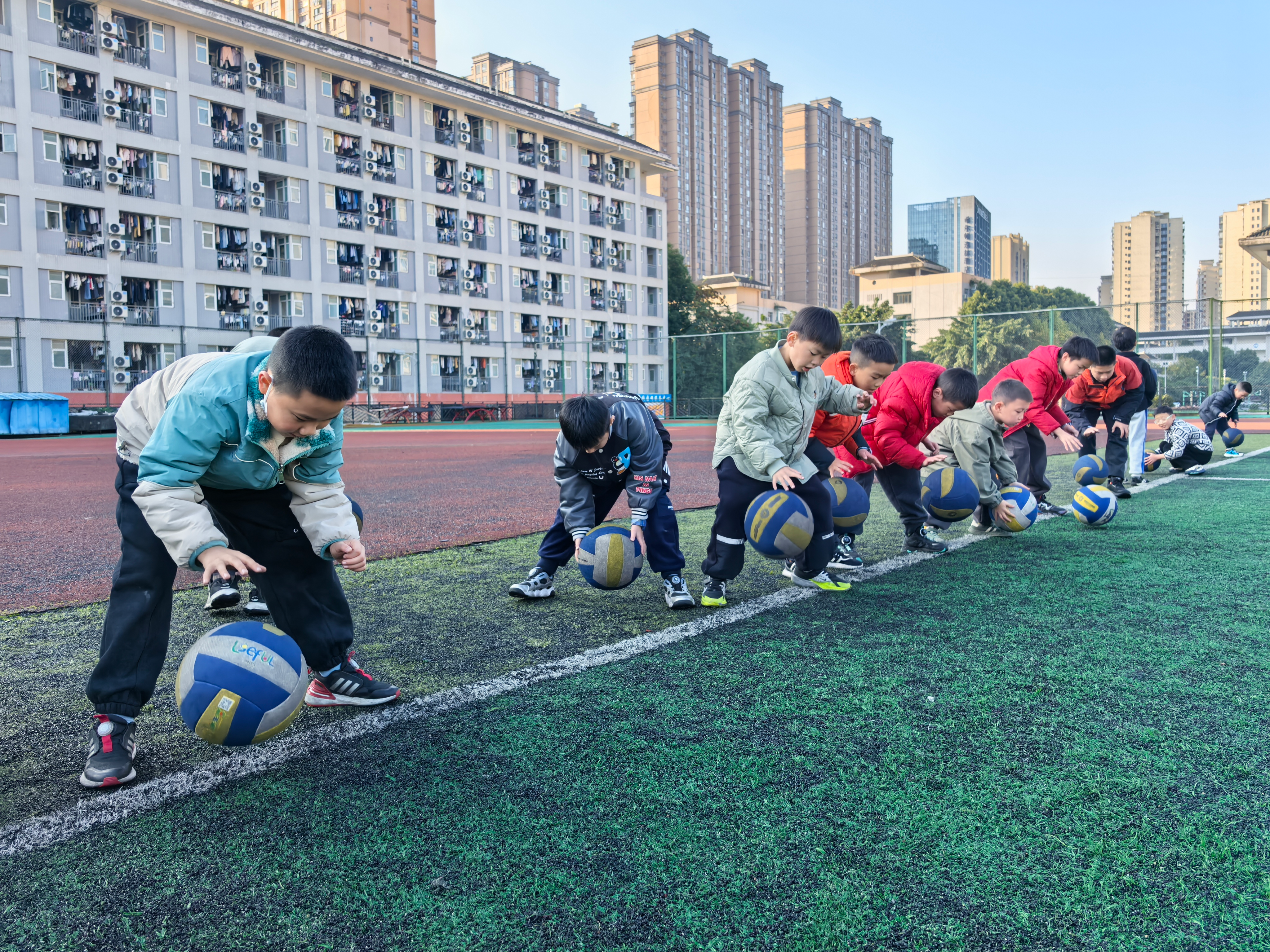 体育赋能环节充分激发学生运动热情。篮球课上,以趣味运球、小组传球接力等基础训练代替复杂战术,让孩子们在轻松氛围中提升协调能力与团队精神;羽毛球教学采用“原地颠球挑战赛”等游戏方式,帮助学生在愉悦互动中掌握握拍与挥拍技巧,锻炼反应速度与专注力;网球训练中,孩子们通过基础挥拍与发球练习,感受运动魅力,增强身体协调性与爆发力。同学们在竞技中奋勇争先、互助协作,展现出积极向上的体育风貌。