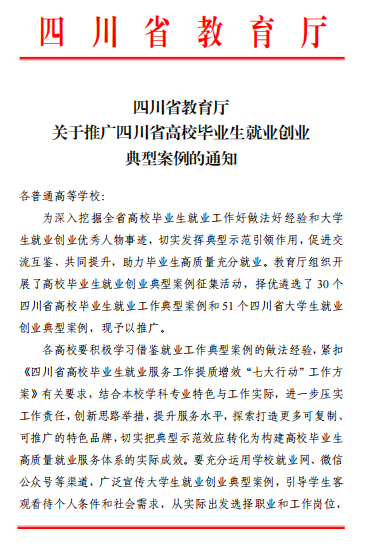 同期,在四川省教育厅组织开展的高校毕业生就业创业典型案例评选中,beat365官网推荐的药学专业2024届毕业生杨太香的基层就业故事,成功入选省级典型案例,并获全省推广。