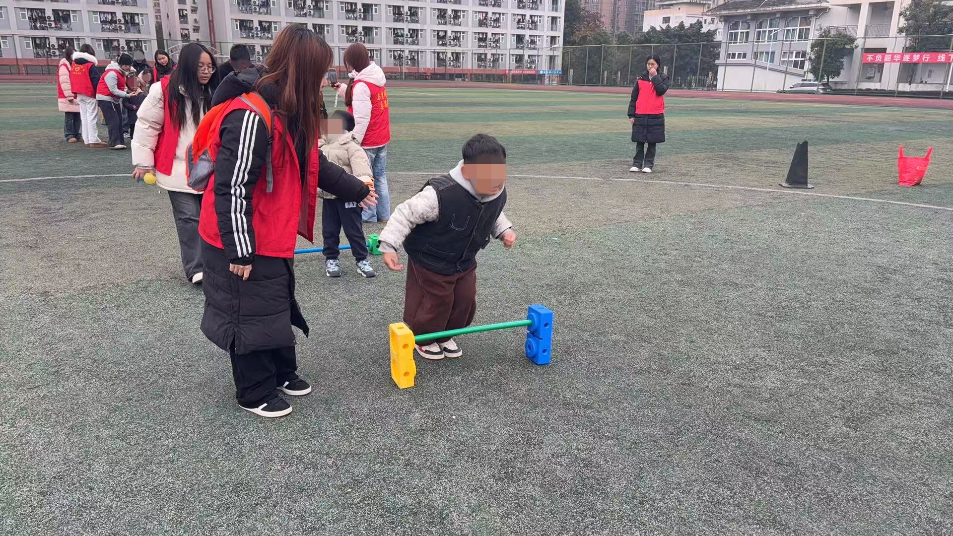 活动伊始,志愿者带领孩子们开展原地慢跑、关节拉伸等热身运动,充分激活身体机能,降低运动风险。随后,平衡踩踏车、跳袋运球、绕杆推大龙球等七大趣味项目依次开展,每个项目均设置两轮体验环节,让孩子们充分感受运动乐趣。活动全程,志愿者始终陪伴在孩子们身边,全程做好安全防护,耐心引导、积极鼓励孩子们独立完成挑战,适时给予协助支持。运动间隙,志愿者带领孩子们开展放松律动活动,伴着欢快的儿歌旋律,孩子们跟随节奏摆动身体,现场欢声笑语不断,每一颗“特殊星光”都在关爱中绽放别样光彩。