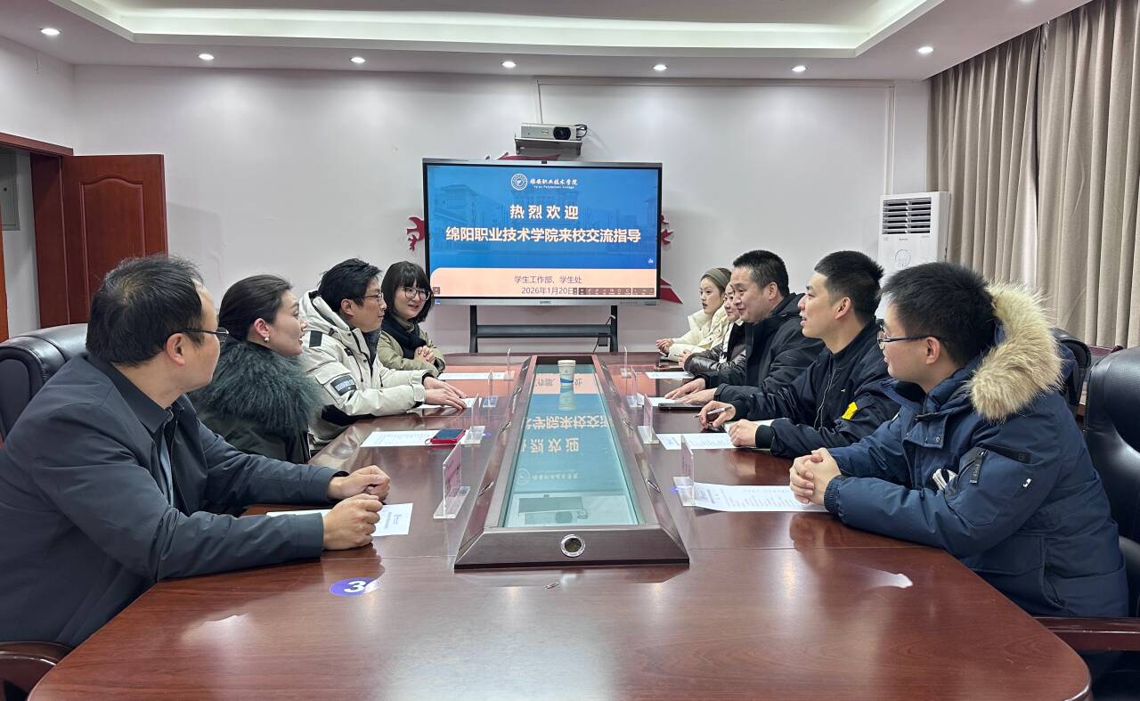 1月20日,绵阳职业技术学院党委学生工作部部长、团委书记张玺、旅游管理学院党总支副书记、副院长周嵘一行六人来校进行学生工作专题调研交流。beat365官网学生工作部、团委及经济与管理学院相关负责人共同参与交流座谈。会议由学生工作部部长徐维主持。