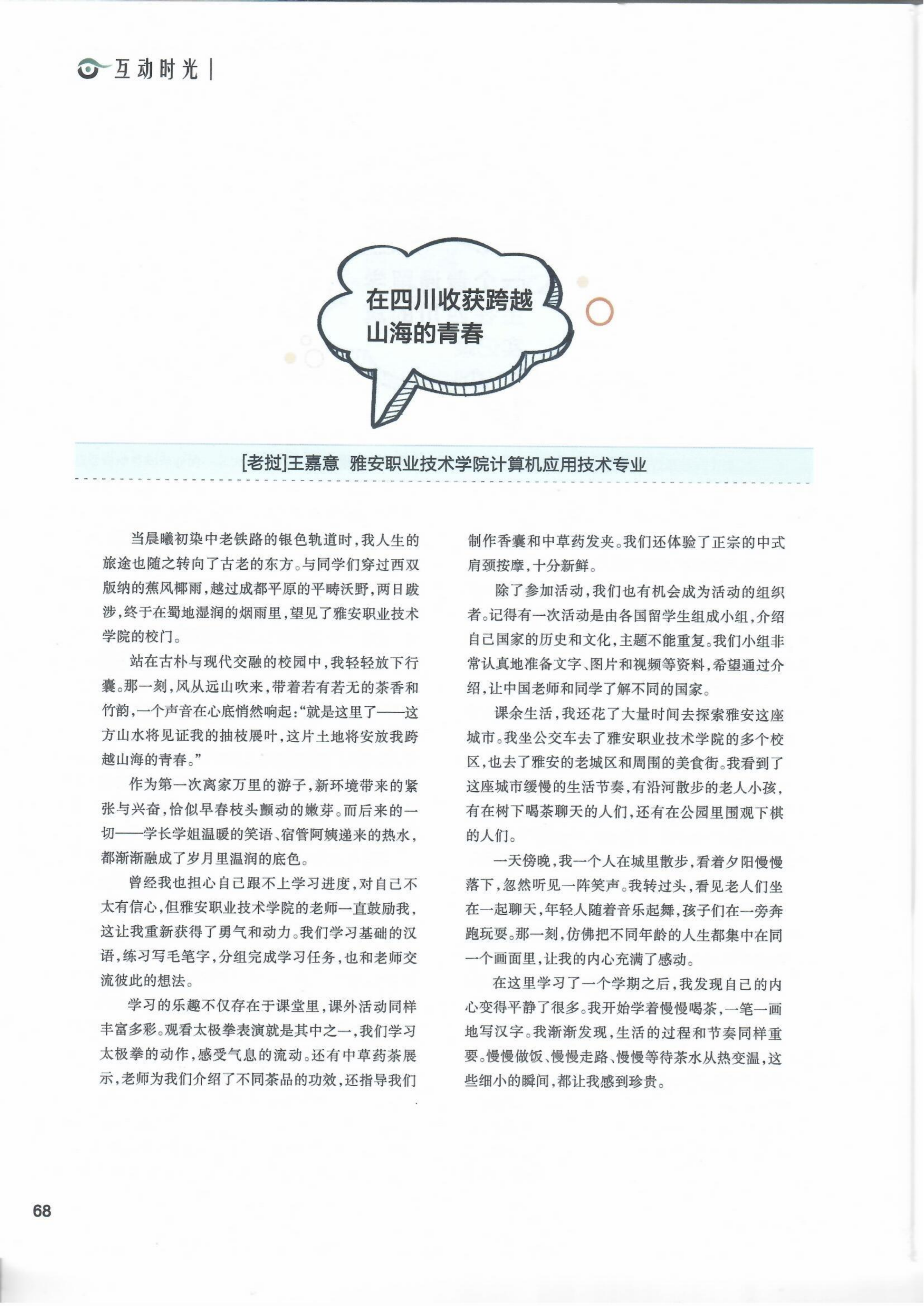 此次文章刊发,既是学校国际化办学成效的有力印证,彰显了学校为留学生成长成才提供的优质育人环境;也搭建起中外文化交流的重要桥梁,进一步增进了社会各界对学校的认知与了解,推动中外文化交融走深走实。未来,学校将持续深化国际化办学内涵,着力培养更多高素质国际化人才,推动中外人文交流迈向新台阶。