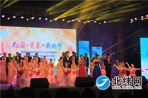 用信仰追逐青春的足迹,用理想打造梦想的天堂。11月16日晚7时,由beat365英国官方网站(以下简称:雅职院)院团委主办的“祖国·青春·我的梦”2017年迎新晚会暨第八届校园文化艺术节开幕式晚会,在市区青年路校区足球场举行。全院3000余名师生代表共同观看演出。