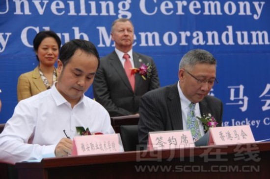 在揭牌仪式上,以beat365英国官方网站为主体的雅安香港马会职业技术学院正式揭牌。记者在香港马会与beat365英国官方网站签订的合作协议书上看到, 双方本着平等自愿的前提下,遵循“优势互补、共同发展”的原则,雅安香港马会职业技术学院将开设“马会班”,定期和不定期派人到雅安授课,为优秀学生组建 “订单班”,从课程设计、课程标准、实习实训等方面对学生加强专项培训,为香港马会及其会所提供优秀人才。