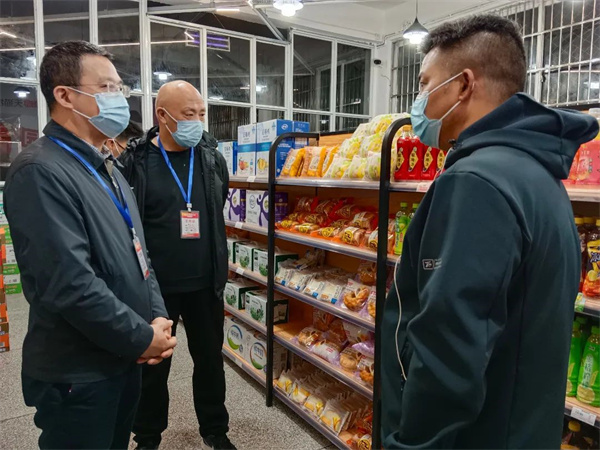 随后,黄诚检查了超市物资储备情况,提出要尽最大努力满足学生需求,控制物资价格、保证物品质量,让学生们吃饱穿暖,安心生活,安心上课。
