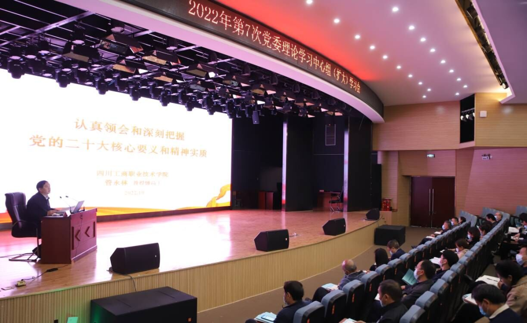 10月27日,四川工商职业技术学院党委召开2022年第7次理论学习中心组(扩大)学习会议,传达学习党的二十大精神。